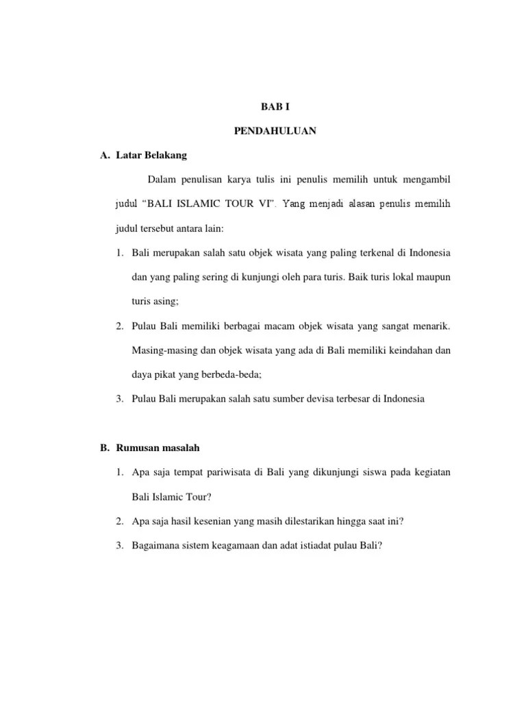 Contoh Karya Wisata Ke Bali - Contoh Karya Tulis Study Tour Ke Bali Masnurul - Salah satunya adalah pulau bali, setiap tahunnya ada wisatawan mancanegara maupan domestik yang datang mengunjungi bali.